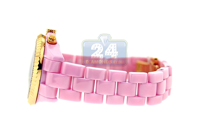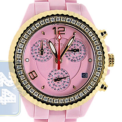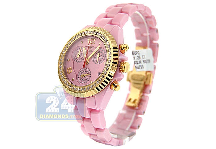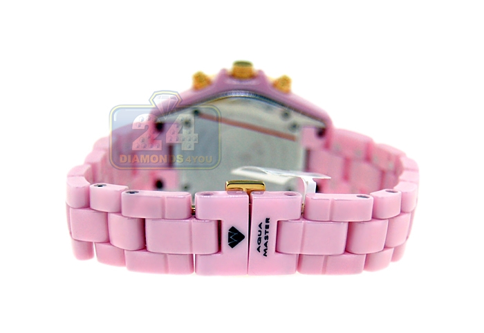 Aqua Master Pink Ceramic 1.25 ct Diamond Womens Gold Tone Watch