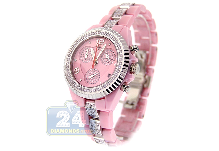 Aqua Master Pink Ceramic 3.00 ct Diamond Womens Mini Watch
