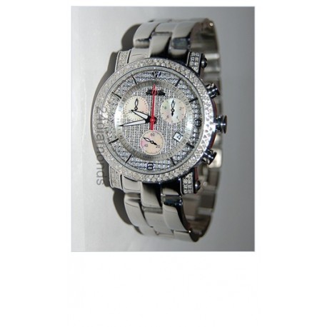 Diamond bezel, 2 row diamond-cut dial, Mother-Of-Pearl subdials, second hand, date at 4:00, 7x37mm case and bracelet solid stainless steel, quartz movement, 1.75 carats total weight diamonds (323 pcs).
