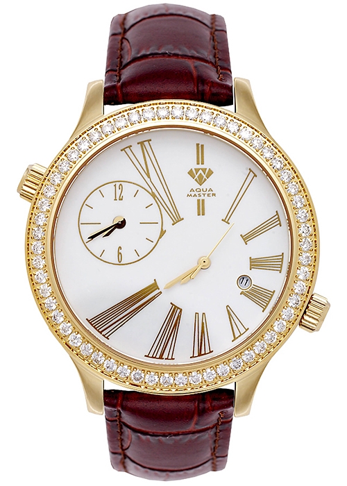 Aqua Master 2 Time Zone 2.45 ct Diamond Mens Brown Leather Watch