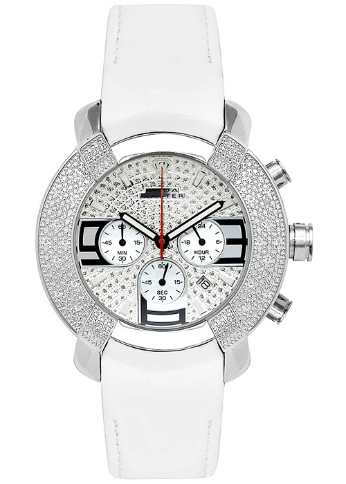 Aqua Master Chronograph Diamond White Leather Mens Watch