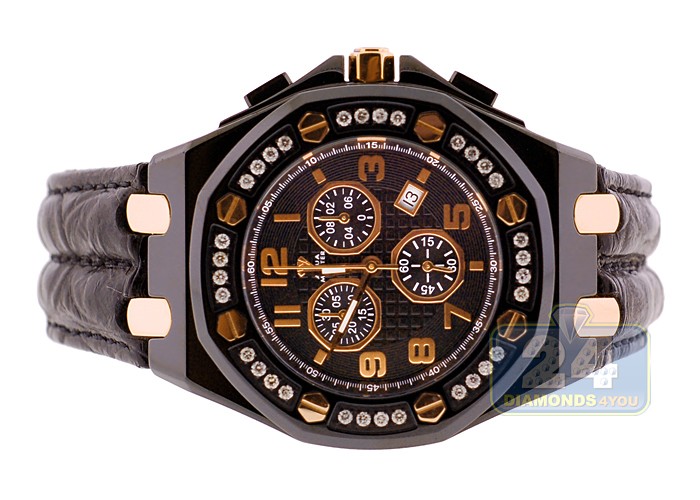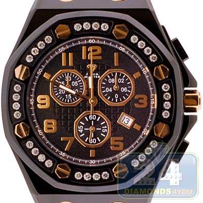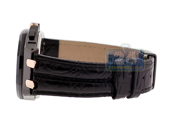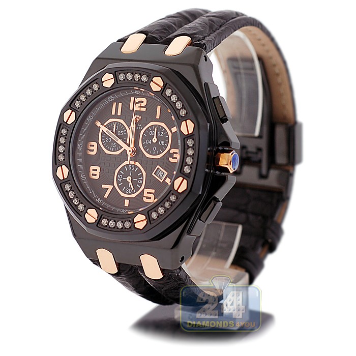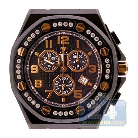 Aqua Master Royal 1.50 ct Diamond Mens Black Leather Watch