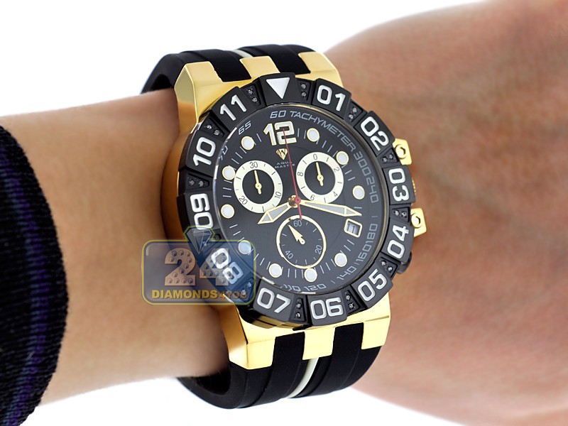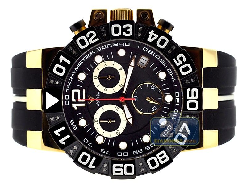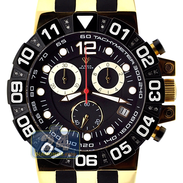 Aqua Master Sport Chrono Yellow Gold Plated 0.24 ct Diamond Mens Black Watch