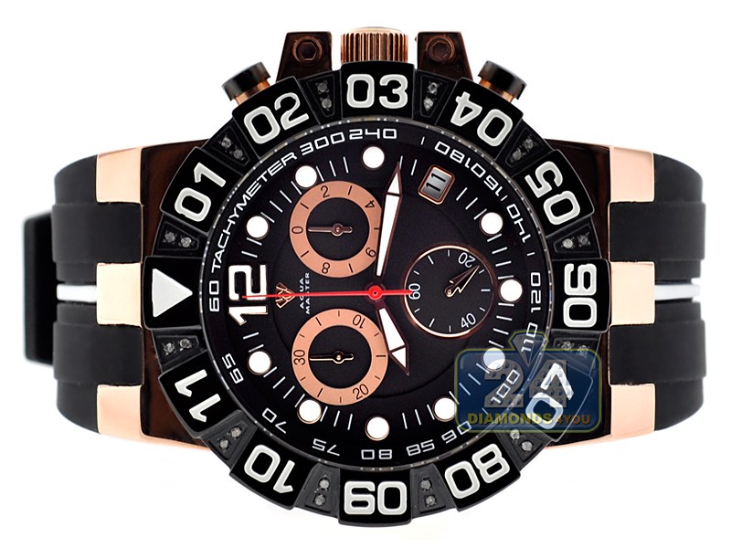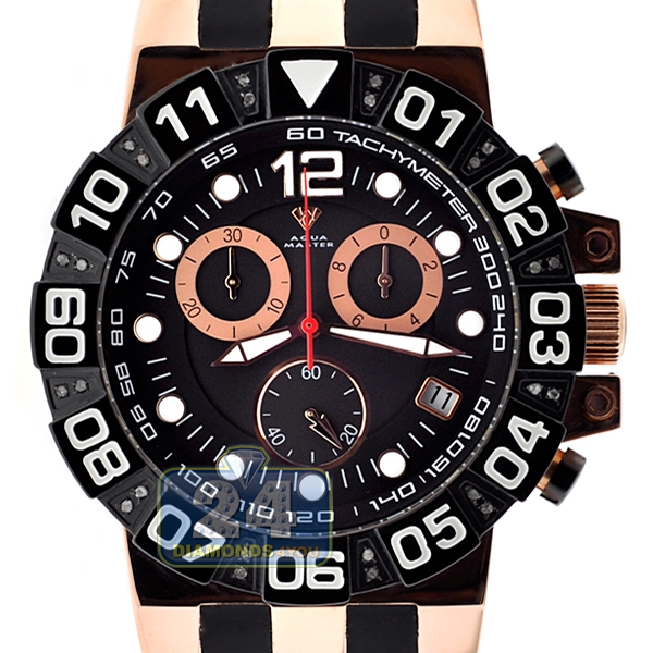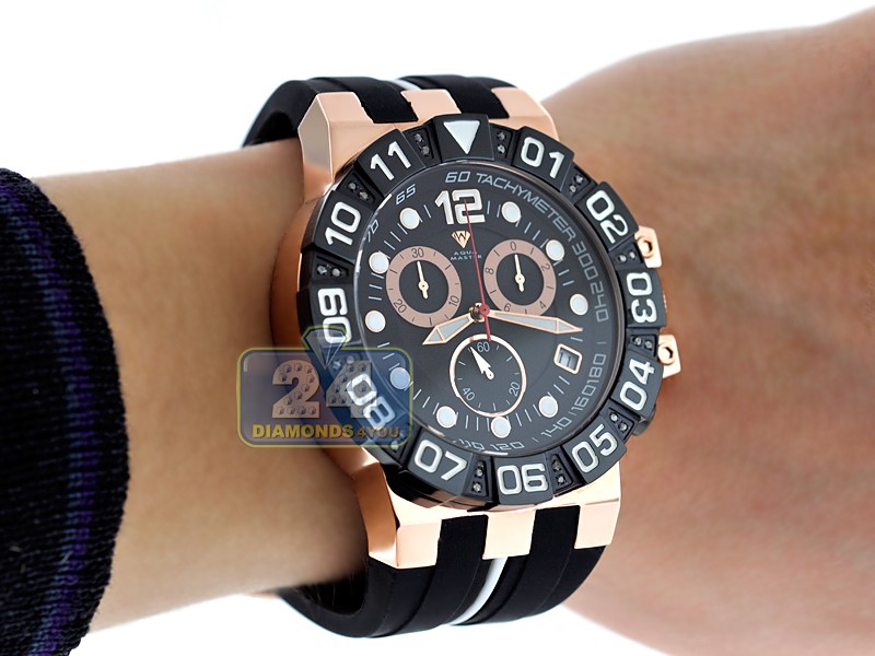 Aqua Master Sport 0.24 ct Diamond Mens Rose Gold Black Dial Watch