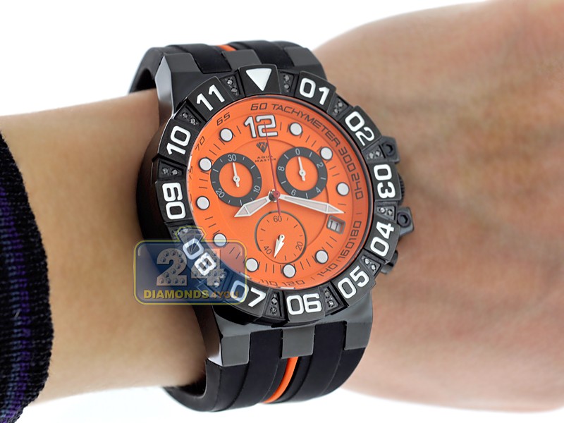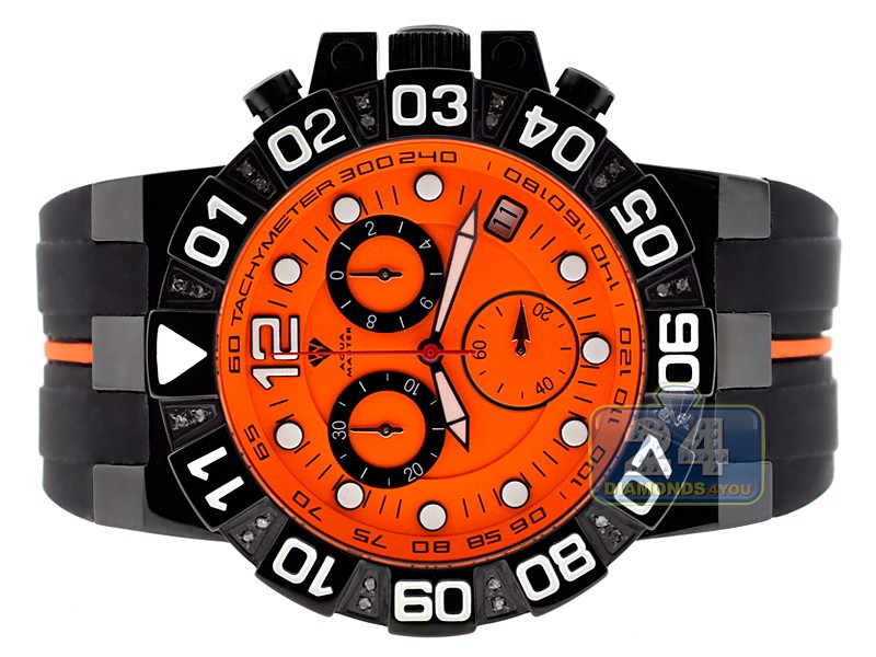 Aqua Master Sport Chrono 0.24 ct Diamond Mens Orange Watch