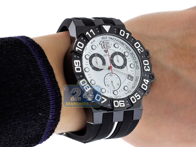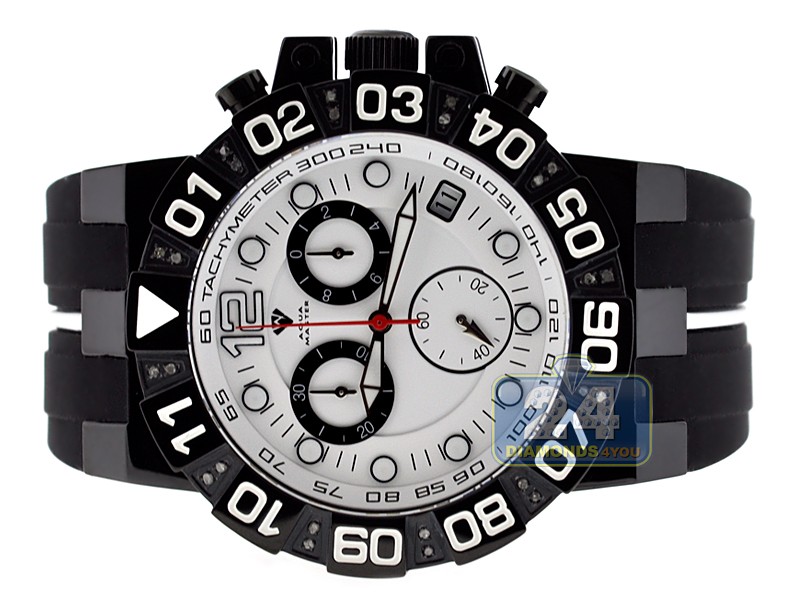 Aqua Master Black PVD Sport Chrono 0.24 ct Diamond Mens White Dial Watch