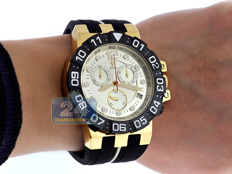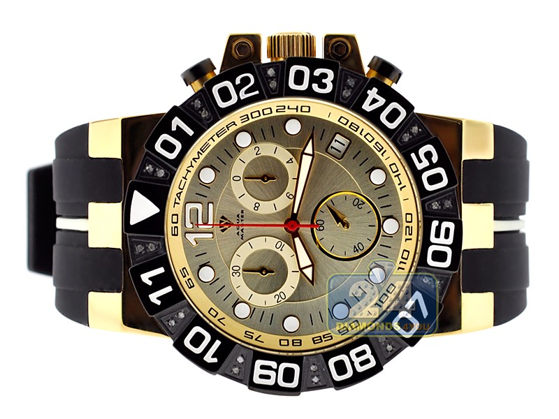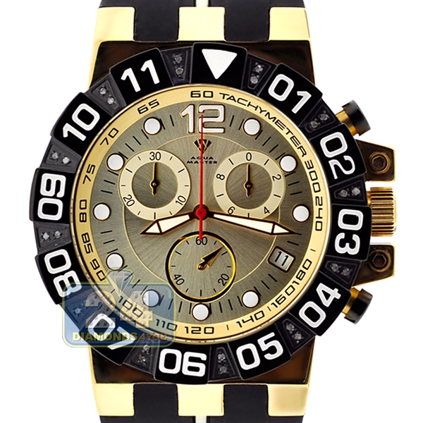 Aqua Master Sport 0.24 ct Diamond Mens Yellow Dial Watch Black PVD Case
