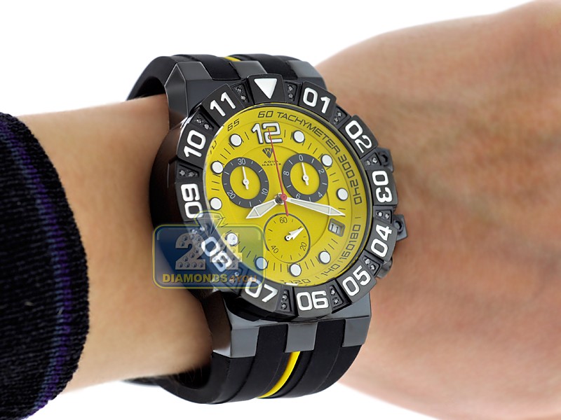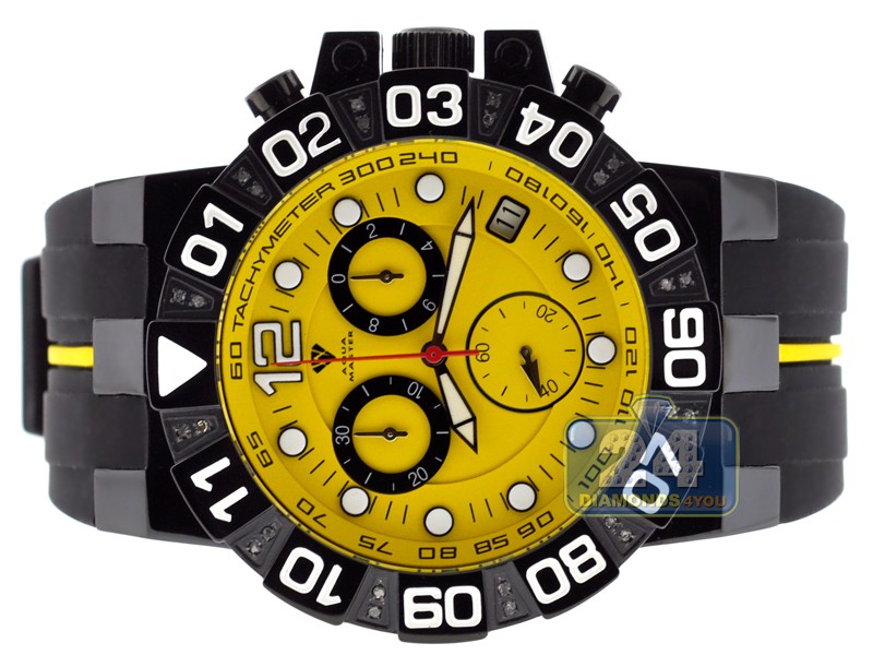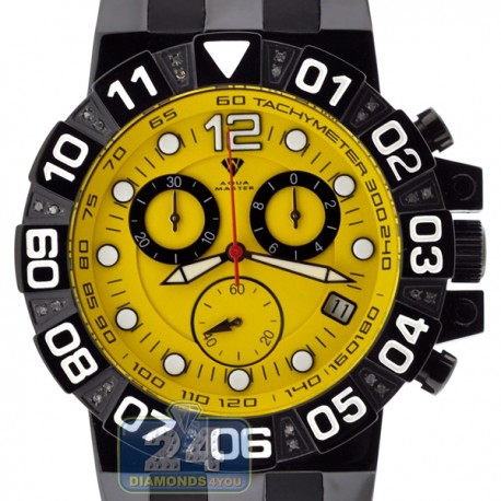 Aqua Master Black PVD Sport Chrono 0.24 ct Diamond Mens Yellow Watch