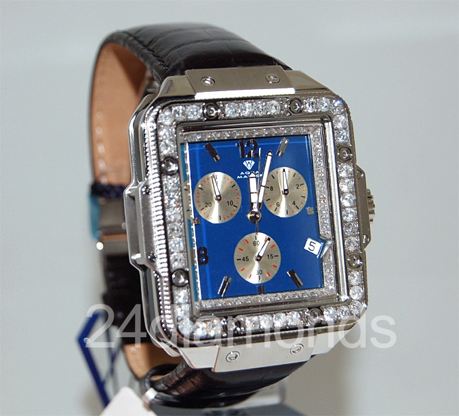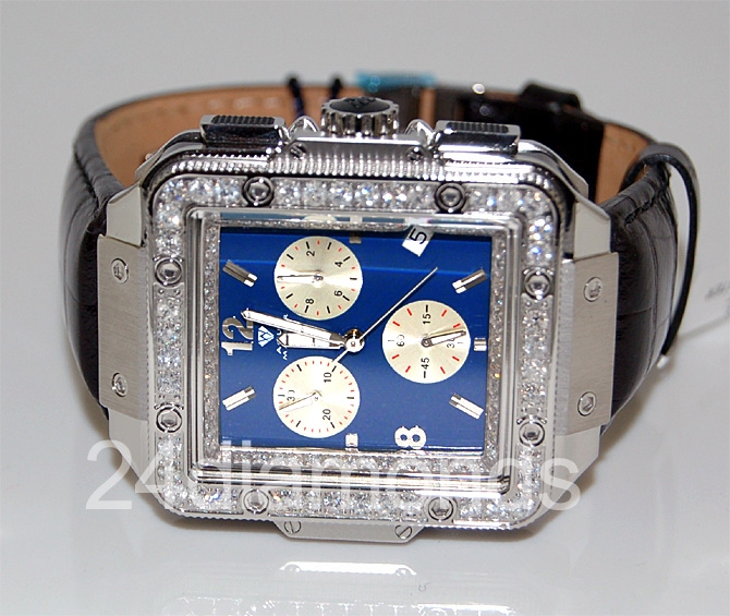 Aqua Master Square 4.25 ct Diamond Mens Blue Dial Watch