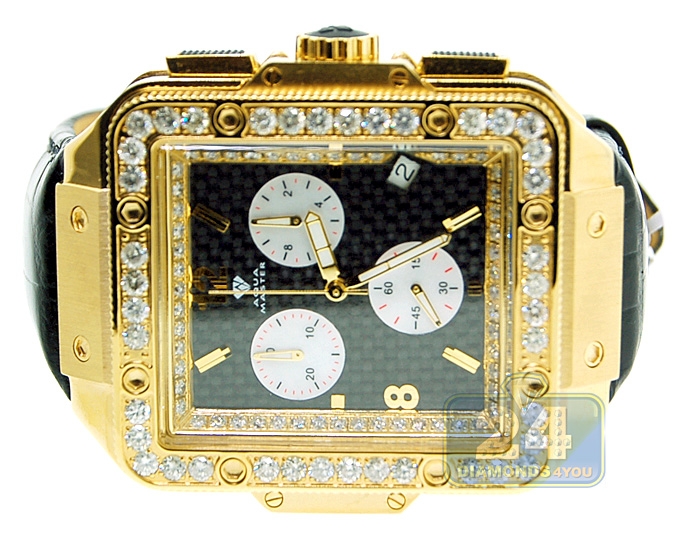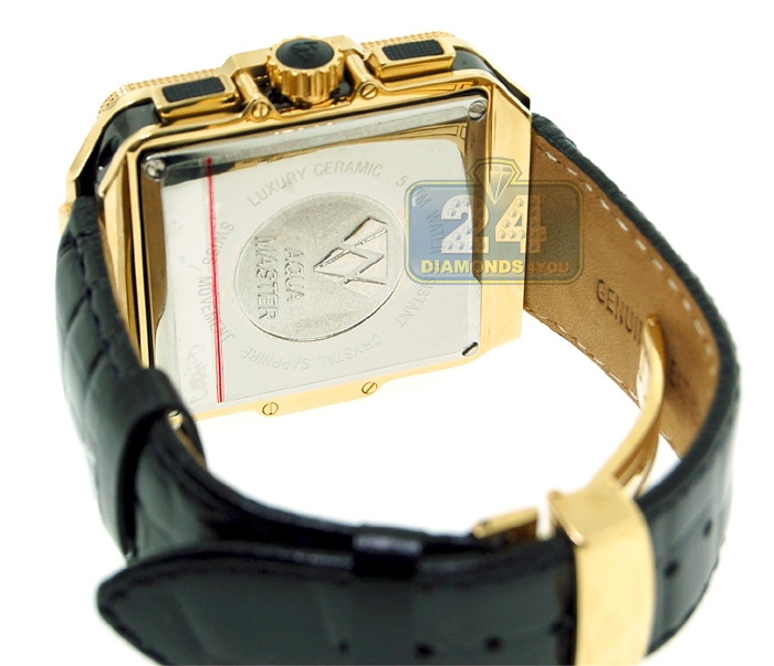 Aqua Master Square 4.25 ct Diamond Mens Yellow Gold Watch