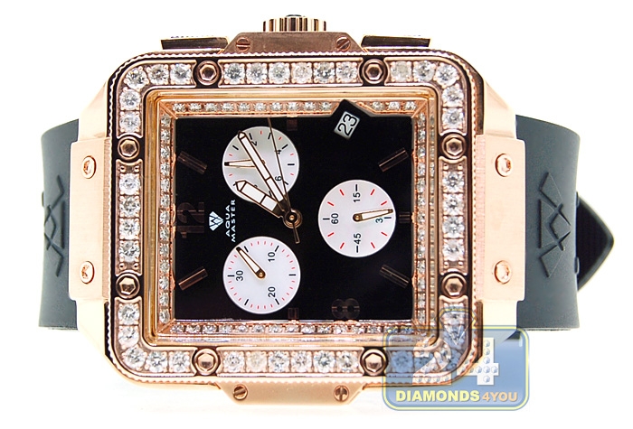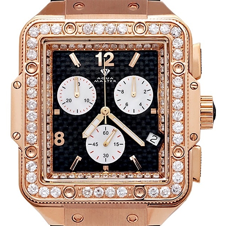 Aqua Master Square 4.25 ct Diamond Mens Rose Gold Watch