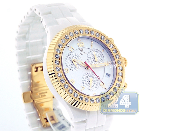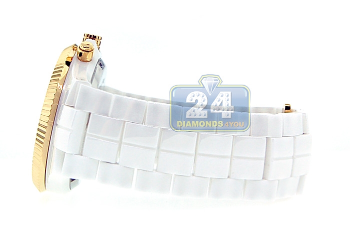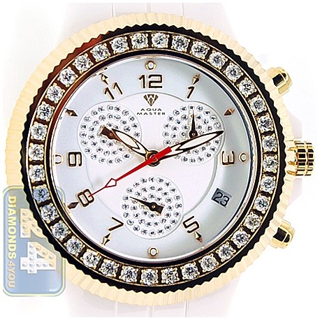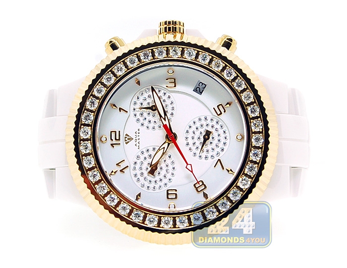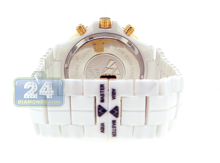 Aqua Master White Ceramic 2.85 ct Diamond Mens Yellow Gold Watch