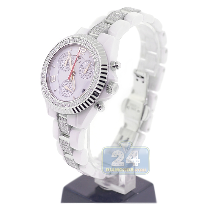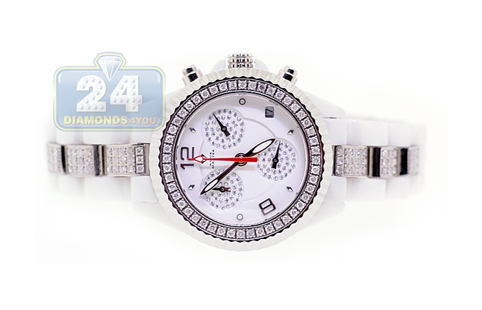 Aqua Master White Ceramic 3.00 ct Diamond Womens Mini Watch