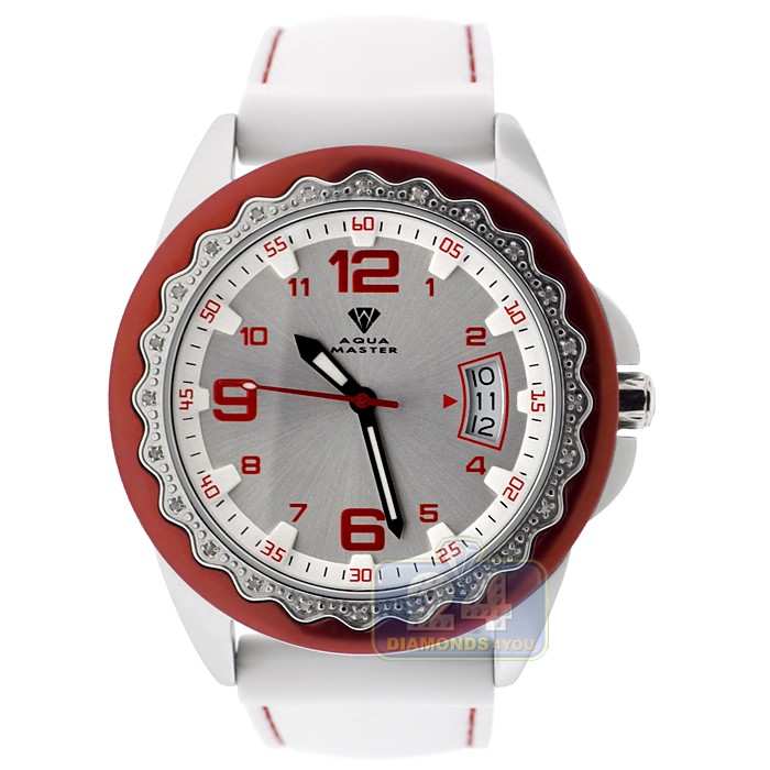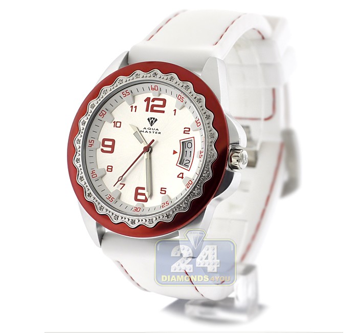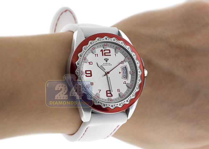 Aqua Master White Rubber Diamond Womens Steel Watch