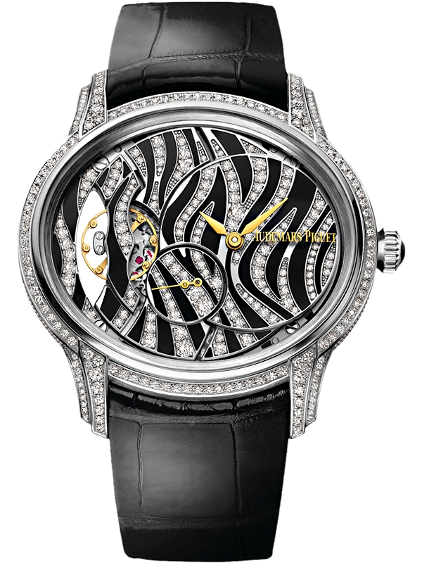 Dial: 18K White Gold with "Zebra" Pattern, set with Diamonds and Onyx