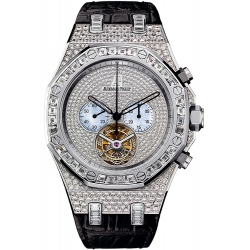 Audemars Piguet Royal Oak Tourbillon Chronograph Diamond 18K White Gold Alligator Strap 44 mm Men's Watch - Reference 26116BC.ZZ.D002CR.01