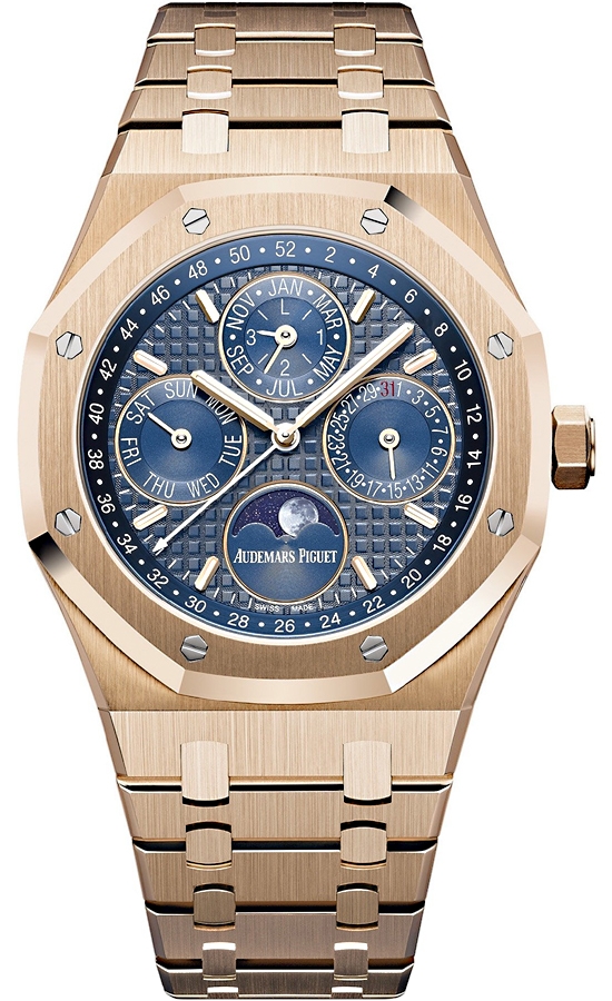 Audemars Piguet Royal Oak Perpetual Calendar 18K Pink Gold Blue Dial 41 mm Men's Watch - Reference 26574OR.OO.1220OR.02