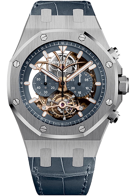Audemars Piguet Royal Oak Tourbillon Chronograph Openworked Platinum Blue Alligator 44 mm Watch - Reference 26347PT.OO.D315CR.01