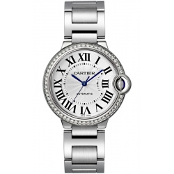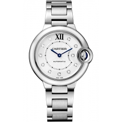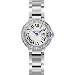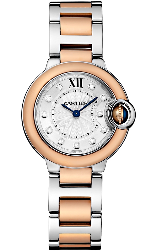 Ballon Bleu de Cartier Diamond Silver Dial 18K Pink Gold Steel Bracelet 28 mm Women's Watch - Reference W3BB0005
