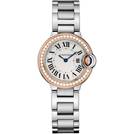 Ballon Bleu de Cartier Diamond 18K Pink Gold Bezel Silver Dial Steel Bracelet 28 mm Women's Watch - Reference WE902079