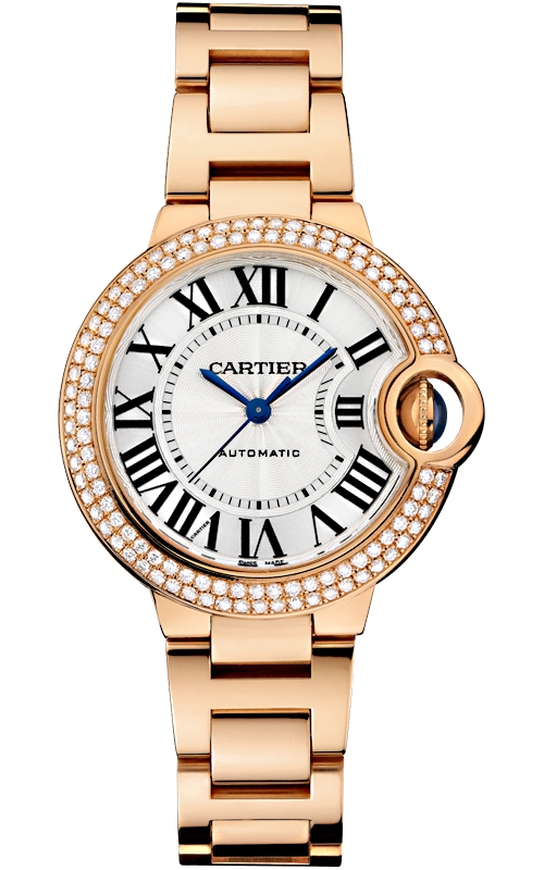 Ballon Bleu de Cartier 33 mm Automatic Silver Dial Diamond Bezel 18K Pink Gold Bracelet Women's Watch - Reference WE902064