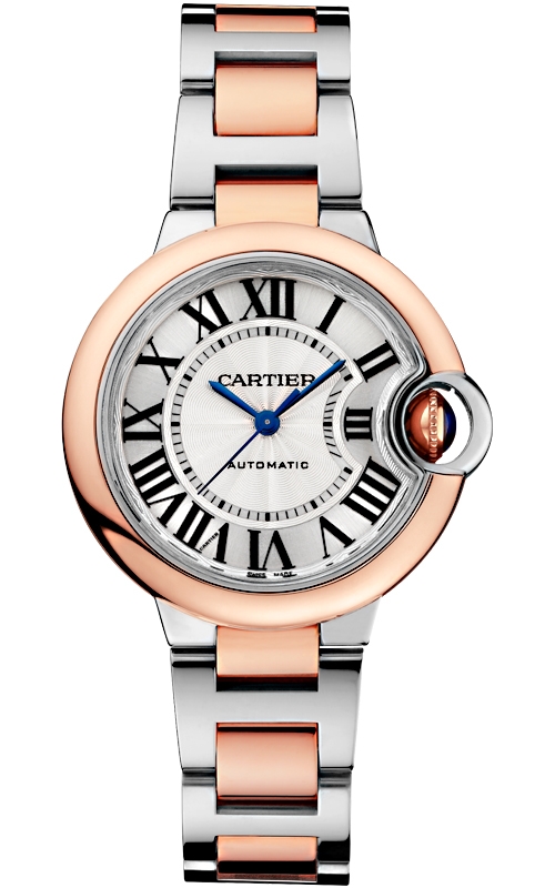 Ballon Bleu de Cartier 33 mm Automatic Silver Dial 18K Pink Gold Steel Bracelet Women's Watch - Reference W2BB0023