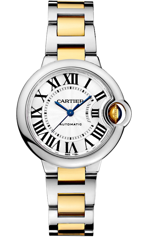 Ballon Bleu de Cartier 33 mm Automatic Silver Dial 18K Yellow Gold Steel Bracelet Women's Watch - Reference W2BB0002