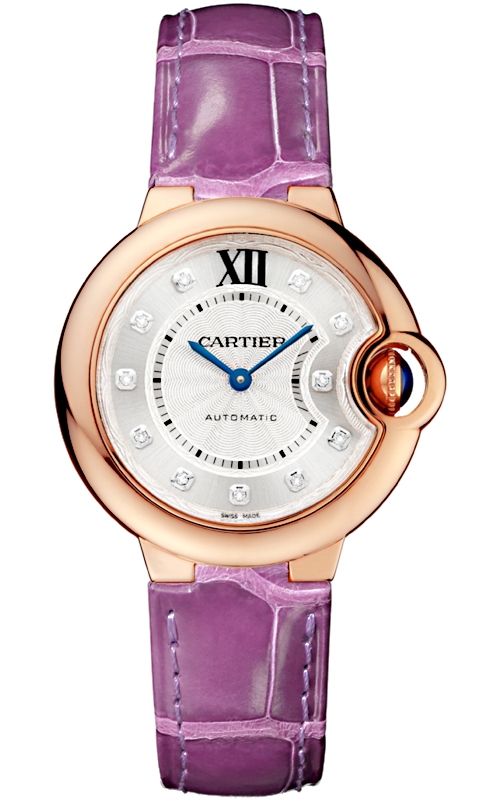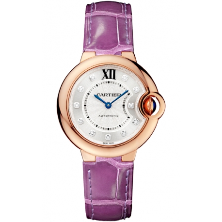 Ballon Bleu de Cartier 33 mm Automatic Purple Alligator Leather 18K Pink Gold Case Women's Watch - Reference WE902063