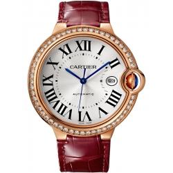 Ballon Bleu de Cartier 42 mm Burgundy Leather Pink Gold Watch WJBB0035