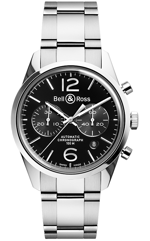 Bell & Ross BR 126 Chrono Officer Black Dial Steel Bracelet Men's Watch - Reference BRG126-BL-ST/SST