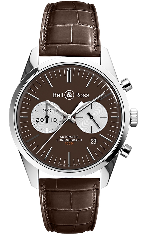 Bell & Ross BR V Chrono BR 126 Officer Brown Dial Alligator Strap Men's Watch - Reference BRG126-BRN-ST/SCR