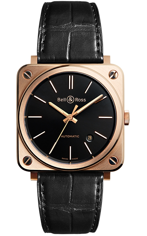 Bell & Ross BR S-92 Automatic 18K Rose Gold Alligator Strap 39 mm Watch - Reference BRS92-BL-PG/SCR