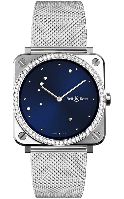 Bell & Ross BR S Quartz Blue Eagle Dial Diamond Bezel Milanese Mesh Bracelet 39 mm Watch - Reference BRS-EA-ST-LGD/SST