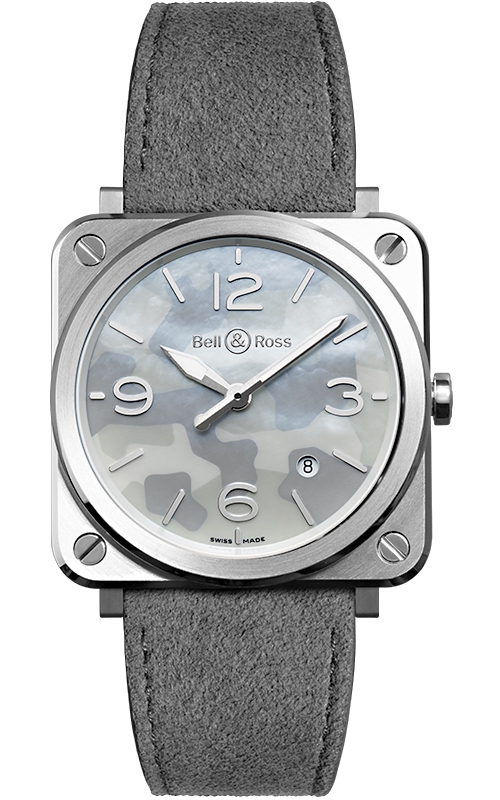 Bell & Ross BR S Quartz Grey Camouflage Dial Alcantara Strap 39 mm Watch - Reference BRS-CAMO-ST/SF