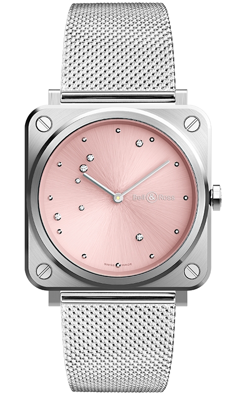 Bell & Ross BR S Quartz Pink Diamond Eagle Milanese Mesh Bracelet 39 mm Watch - Reference BRS-EP-ST/SST