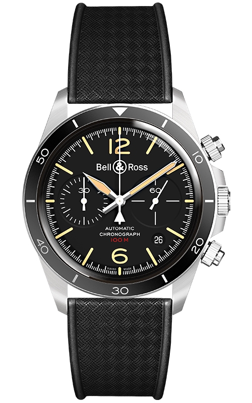 Bell & Ross BRV Chrono BR V2-94 Steel Heritage Rubber Strap Men's Watch - Reference BRV294-HER-ST/SRB