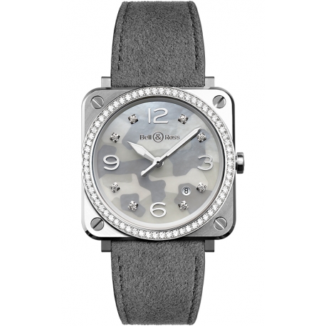 Bell & Ross BR S Quartz Grey Camouflage Dial Diamonds Alcantara Strap 39 mm Watch - Reference BRS-CAMO-ST-LGD/SF