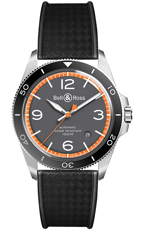 Bell & Ross Vintage BR V2-92 Garde-Cotes Black Rubber Band Men's Watch - Reference BRV292-ORA-ST/SRB