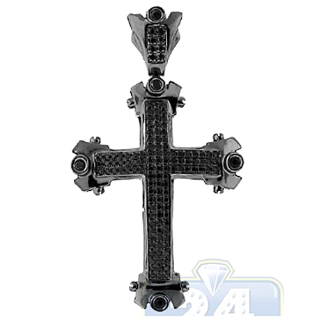 Black 14K Gold 0.60 ct Diamond Religious Cross Mens Pendant