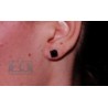 Our unique black rhodium plated stud earrings with mysterious black diamonds make a stylish statement of your style. The round, faceted black diamonds are held securely in four-prong basket settings with a secure closure. Total stone weight is 3.29 carats. Very simple but classic addition to your evening dress or everyday wear.