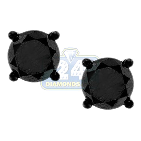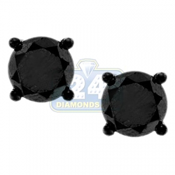 Black 14K Gold 3.29 ct Round Diamond Womens Stud Earrings
