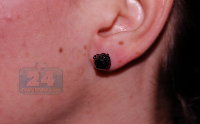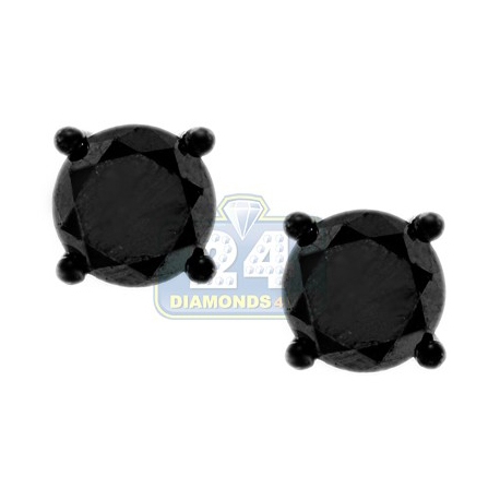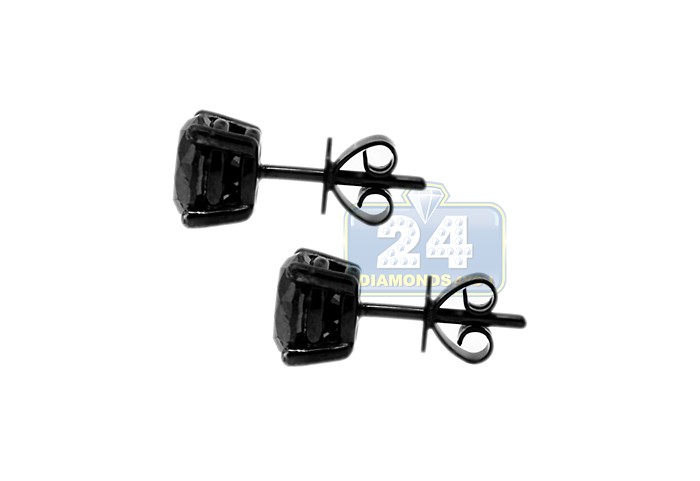 These gorgeous 14k white gold black rhodium plated stud earrings with mysterious black diamonds make an unique and fashionable statement of your style. The round, faceted black diamonds are held securely in four-prong basket settings with a secure closure. Total stone weight is 5.11 carats. Very simple but classic addition to your evening dress or everyday wear.
