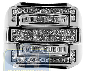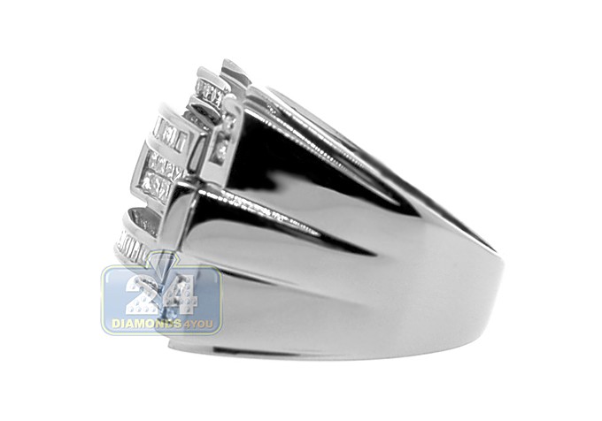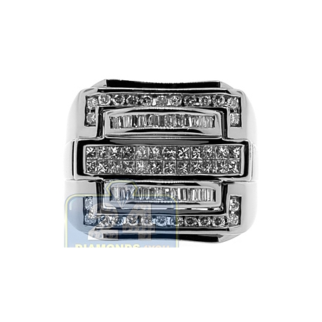 Our sophisticated 1.36 carat diamond ring is specially created for luxury lovers! Masculine looking, wide 14k gold setting with black rhodium finish makes a great impression. The center area is invisibly set with two icy rows of 0.64 carat princess cut diamonds. Shimmering 0.43 carat round 0.23 carat baguette cut precious stones surround the stunning center of the signet. What an unique combination of mixed shape diamonds!
