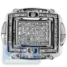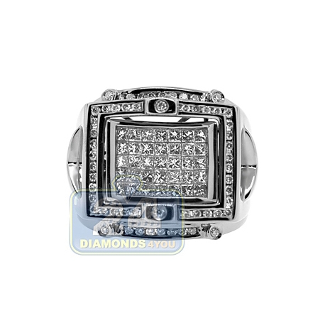 This exciting 14k white gold ring has a compelling design that is breathtaking! Alluring centerpiece is invisibly set with 1.03 ct total weight princess cut diamonds and framed by shiny 0.47 ct total weight round cut stones. This handsome combination of stunning brilliants and black rhodium finish makes this jewelry piece unforgettable!