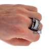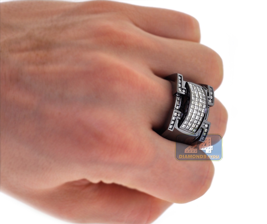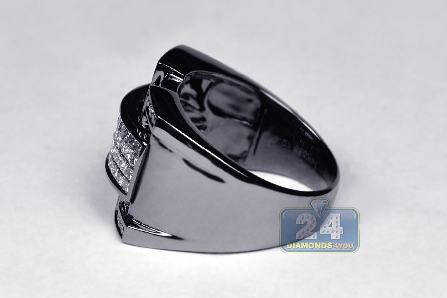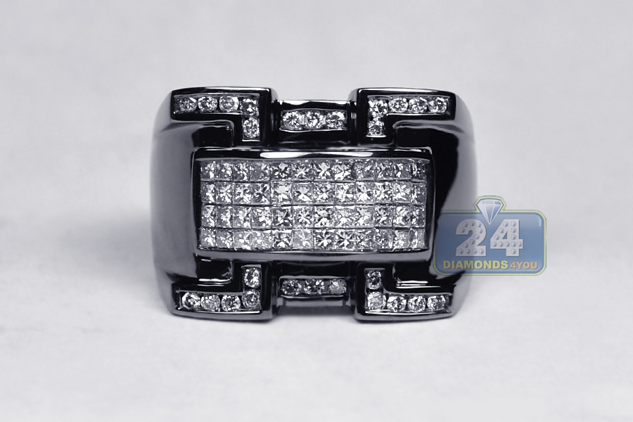 Our men's diamond signet is a precious reminder of originality and fancy taste! The handsome ring is masterly created from 14k gold, and covered with black PVD to create a special mysterious effect. Our jewel is invisibly handset with four rows of princess cut diamonds (1.23 carat) that are uniquely surrounded by round brilliant cut diamonds (0.40 carat). All these stones are sparkling and eye clean with SI1-SI2 clarity and H-I color. Its impressive style coupled by elegance will bring years of enjoyment!