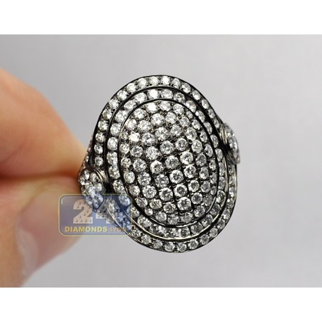 Show off your original fashion taste with a dazzle diamond ring! The jewel is gorgeously manufactured in 14k gold and covered with mysterious black pvd coating. Our fancy ring is expertly encrusted with 3.24 carats of icy white diamonds making a gorgeous contrast of black and white. The brilliants are natural and feature SI1-SI2 clarity with G-H color. A truly spectacular look for a princess!