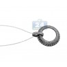Add charming and popular circle motifs with this round diamond pendant. This glamorous necklace features a cluster of pave-set diamonds, surrounded by another circle of the same shimmering icy diamonds. Total weight of these gorgeous diamonds is 1.41 carat (SI1-SI2 clarity, G-H color). Our women's diamond pendant measures 33 mm in height and 28 mm in width. This wonderful design is accented with black rhodium which adds extra unique effect to your look!