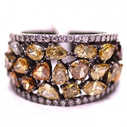 For a woman who isn't shy about her love for glamour things in life, our 18k gold eternity ring features completely encrusted with diamonds design that has 3.33 carat round cut diamonds of the natural origin. Each brilliant is perfectly eye clean and sparkling, handpicked to match with G-H color and VS1-VS2 clarity. The vivid shine of white diamonds & black PVD finish gives this jewel absolutely stunning effect!