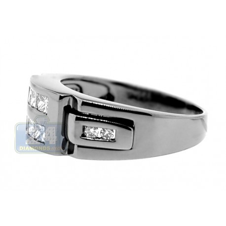 Add this exclusive signet to your daily look! Shining 14k gold with black pvd setting is masterly handset with two genuine round cut diamonds on each side of the shank. The central part is highlighted two rows of shimmering invisible set princess cut diamonds. All these brilliants are icy white and sparkling, perfectly contrasting with black colored precious metal. What an absolutely eye-catching design!