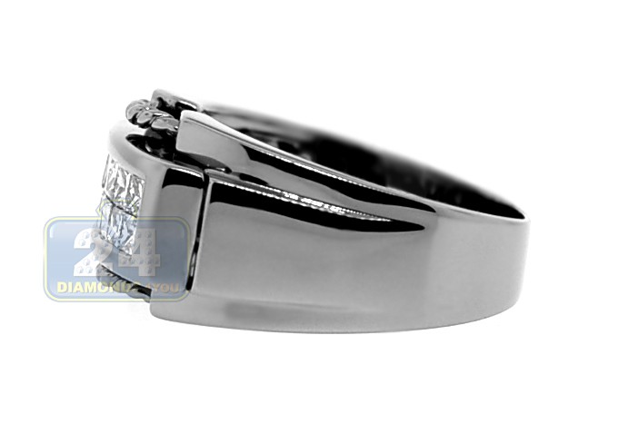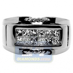 Modern, stylish and luxurious! This fancy band features a striking twisted rope patterns on the sides of the centerpiece which is invisibly set with genuine 0.91 carat of princess cut diamonds. Each stone is eye clean and sparkling, with SI1-SI2 clarity and G-H color. Black rhodium finish is added for more mysterious and sophisticated look!